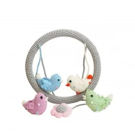 Sindibaba49,90 €Le mobile bébé en Crochet "Mariage des oiseaux" captera l'attention de votre bébé. Conçu pour la décoration de la chambre d'enfant, il est fabriqué à la main dans les conditions du commerce équitable. Votre bébé pourra regarder les personnages tourner ou vous écouter et regarder secouer les petits oiseaux qui disposent tous d'un petit hochet intégré. Le mobile est idéal pour éveiller les sens de bébé dès sa naissance mais également pour le calmer et l'endormir.