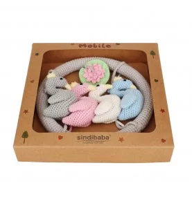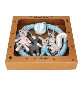 Sindibaba49,90 €Le mobile bébé en Crochet "Animaux domestiques" captera l'attention de votre bébé. Conçu pour la décoration de la chambre d'enfant, il est fabriqué à la main dans les conditions du commerce équitable. Votre bébé pourra regarder les personnages tourner ou vous écouter et regarder secouer les petits animaux qui disposent tous d'un petit hochet intégré. Le mobile est idéal pour éveiller les sens de bébé dès sa naissance mais également pour le calmer et l'endormir.