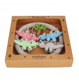 Sindibaba49,90 €Le mobile bébé en Crochet "LE MONDE DES DINOSAURES" captera l'attention de votre bébé. Conçu pour la décoration de la chambre d'enfant, il est fabriqué à la main dans les conditions du commerce équitable. Votre bébé pourra regarder les personnages tourner ou vous écouter et regarder secouer les petits dinosaures qui disposent tous d'un petit hochet intégré. Le mobile est idéal pour éveiller les sens de bébé dès sa naissance mais également pour le calmer et l'endormir.