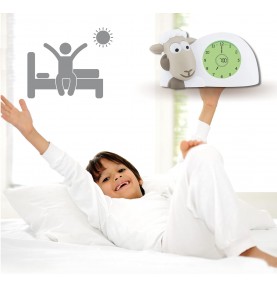 Sam l'agneau camel est à la fois un réveil éducatif et une veilleuse. Cet accompagnateur de sommeil aide les enfants à l’aide d’indicateurs visuels à comprendre quand rester au lit et quand il est l'heure de se lever: